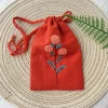 Custom Embroidered Drawstring Bag, Rose Embroidered Pouch, Flower Embroidered Pouch, Personalized Cosmetic Bag, Jewerly Pouch, Makeup Linen Bag