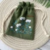 Flower Hand Embroidered Coin Pouch, Card Holder, Linen Pouch, Personalized Zip Purse, Bridesmaid Gift, Embroidered Small Pouch,Crystal Pouch